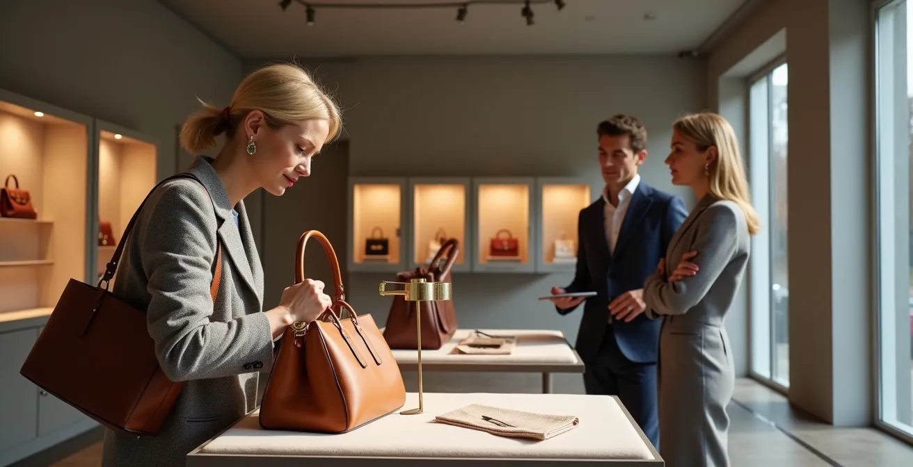 Le second point de contrôle est le poids et le son de la quincaillerie. Les fermoirs, zips et boucles d’une pièce de luxe sont faits de métaux pleins (souvent du laiton plaqué). Ils sont lourds et produisent un son mat et plein lorsqu’on les manipule. Une contrefaçon utilisera des alliages plus légers ou creux, résultant en un « clic » aigu et métallique, signe d’une qualité inférieure. Enfin, le troisième test est olfactif : l’odeur du cuir. Un cuir de haute tannerie dégage une odeur riche et naturelle. Les contrefaçons utilisent des cuirs de moins bonne qualité, souvent traités avec des produits chimiques dont l’odeur plastique ou âcre persiste, même après plusieurs mois.