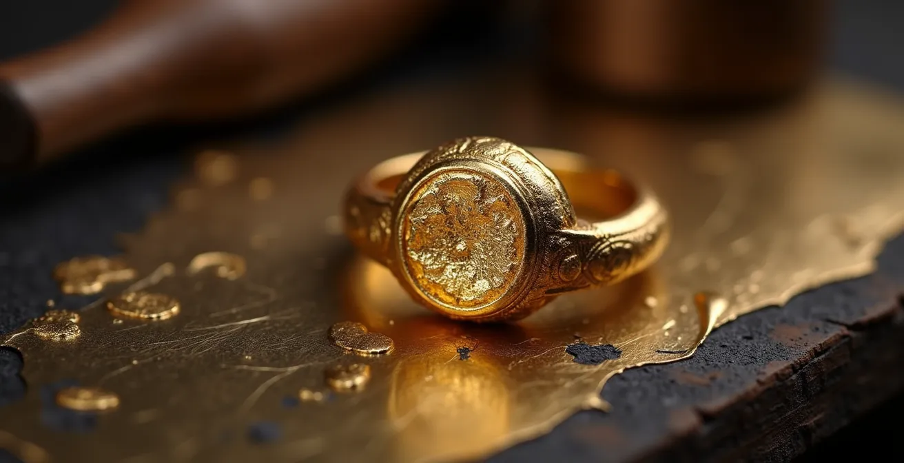 Comme le montre cette image, l’usure n’est pas une théorie. Voir un poinçon s’effacer, c’est voir l’histoire et la signature de l’artisan s’évaporer. Avant de demander un polissage pour une simple rayure, demandez-vous si cette petite imperfection ne fait pas partie de la vie de votre bijou, une cicatrice bien moins dommageable que l’amputation d’une partie de son âme et de sa valeur.
